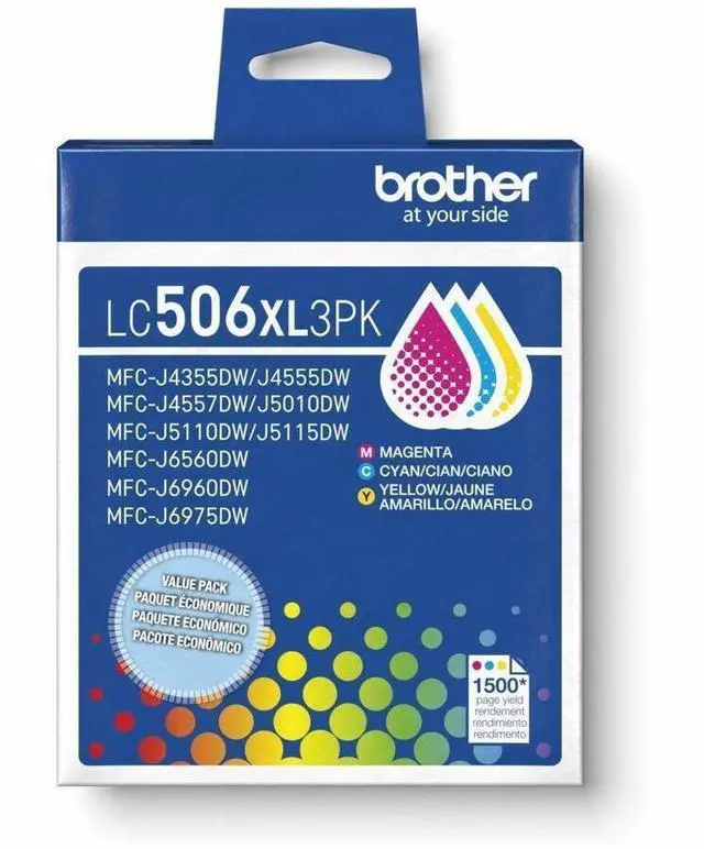 BROTHER GENUINE LC506XL3PK 3-PACK HIGH YIELD CYAN, MAGENTA, AND YELLOW INK CARTR