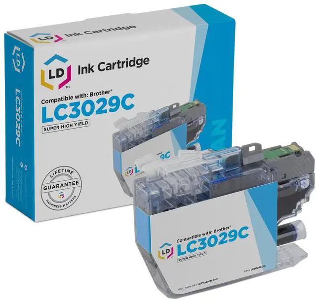 This listing includes (1) LC3029C / LC3029 super high yield series cyan ink cartridge. This ink cartridge is compatible with Brother MFC-J5830DW, MFC-J5830DWXL, MFC-J5930DW, MFC-J6535DW, MFC-J6535DWXL and MFC-J6935DW printers. Please note, retail packaging may vary and this cartridge will only work with printers purchased within the United States and Canada. The use of compatible printing supplies does not void your printer warranty. We are the exclusive reseller of LD Products brand of high quality printing supplies.