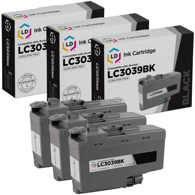 This offer includes (3) LC3039BK Ultra High Yield Black ink cartridges; they replace the LC3037 Super High Yield Series. This ink cartridge pack is compatible with Brother HL-J6000 DW, MFC-J5845DW, MFC-J5845DW XL, MFC-J5945DW, MFC-J6545DW, MFC-J6545DW XL, MFC-J6945DW printers. Please note, retail packaging may vary and these cartridges will only work with printers purchased within the United States and Canada. The use of compatible replacement cartridges and supplies does not void your printer warranty. We are the exclusive reseller of LD Products brand of high quality printing supplies.