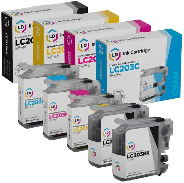 This listing contains 2 LC20EBK Black, 1 LC20EC Cyan, 1 LC20EM Magenta, and 1 LC20EY Yellow inkjet cartridges. This set works in the following