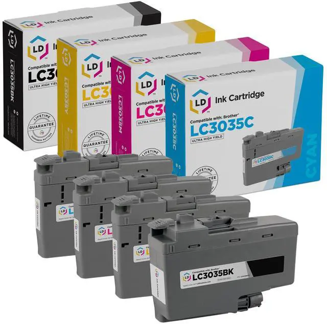 This offer includes 1 LC3035BK Black, 1 LC3035C Cyan, 1 LC3035M Magenta and 1 LC3035Y Yellow Ultra High Yield ink cartridges; they replace the LC3033 Super High Yield ink series. This ink cartridge set is compatible with Brother MFC-J815 DW XL, MFC-J995DW and MFC-J995DW XL printers. Please note, retail packaging may vary and these cartridges will only work with printers purchased within the United States and Canada. The use of compatible replacement cartridges and supplies does not void your printer warranty. We are the exclusive reseller of LD Products brand of high quality printing supplies.
