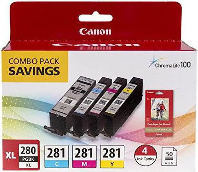 With this advanced feature, maintain continuous printer operation and productivity without interruption. Crafted with the quality and reliability synonymous with the Canon brand, these ink tanks deliver consistent results print after print. Whether you're producing professional business documents, printing detailed graphics, or creating colorful presentations, this Canon PGI-280 XL / CLI-281 ink pack is formulated to provide superior print quality and longevity. By using this authentic Canon ink tank combo pack, you're ensuring that your PIXMA printer continues to function at its best, providing you with the high-quality output that Canon users have come to expect.