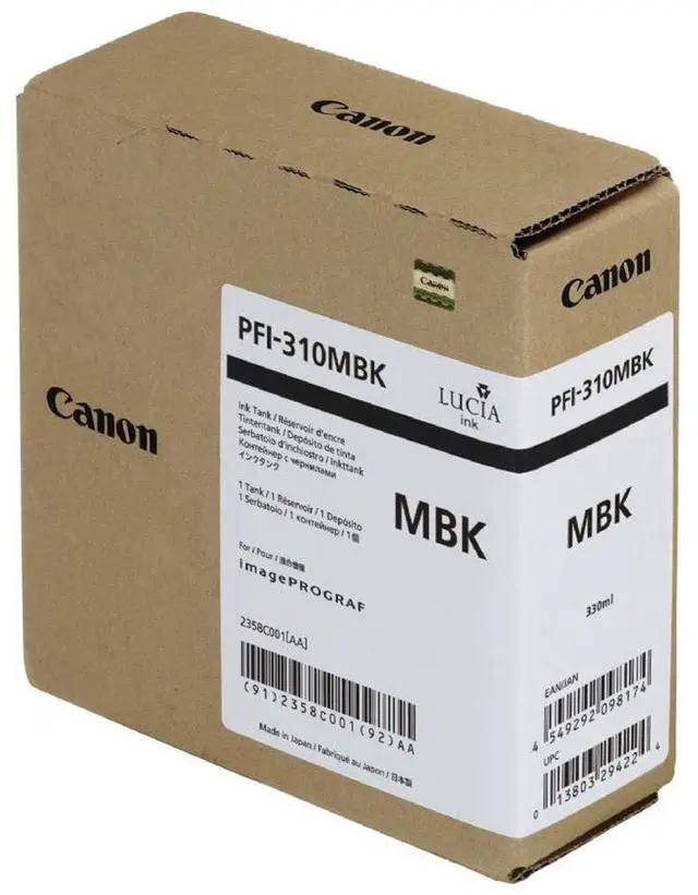 Its easy installation process ensures minimal downtime, allowing you to get back to printing quickly. Incorporate the Canon PFI-310 330ml Matte Black Pigment Ink Tank into your printing setup and experience the difference in quality and performance that Canon products are known for.