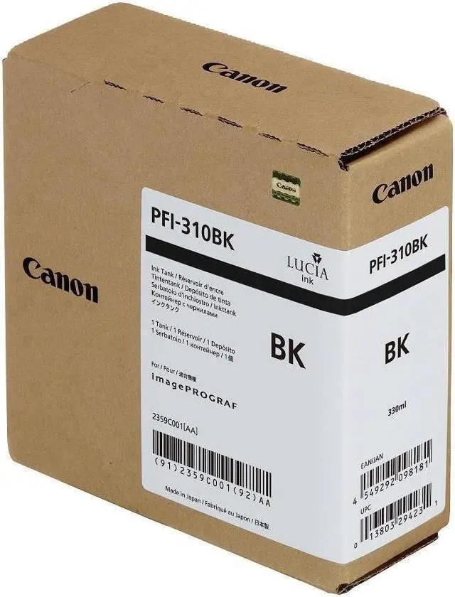 Trust in the reputation of Canon, a leading brand in the photography and printing industry, known for their commitment to quality and reliability. The Canon PFI-310 330ml Black Pigment Ink Tank is a testament to this, offering consistent performance and longevity. Enhance your printing experience with this superior ink tank, designed to meet the demands of high-volume printing environments.