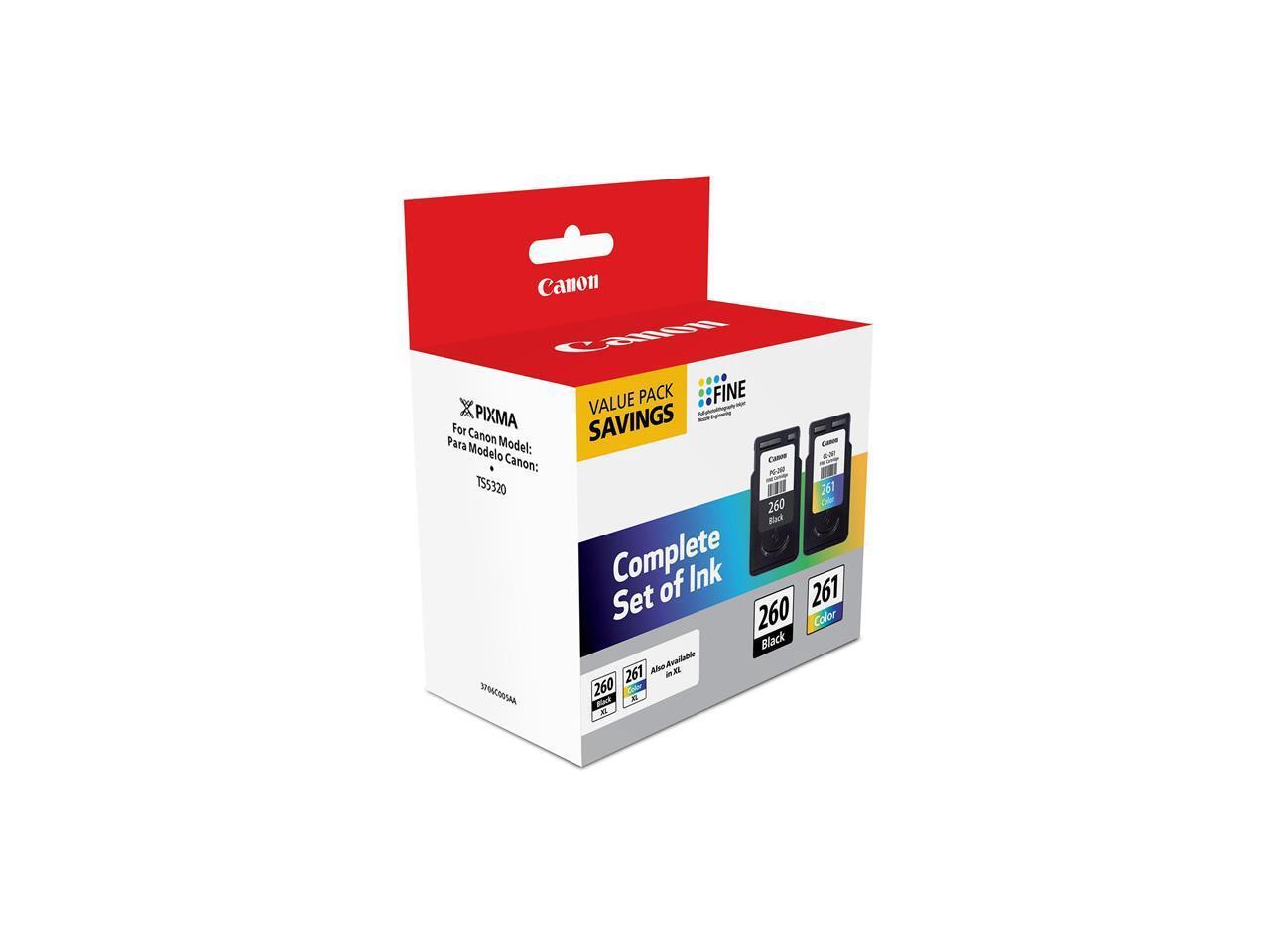 Canon PG-260 Black & CL-261 Color Ink Cartridge Value Pack for PIXMA TS5320