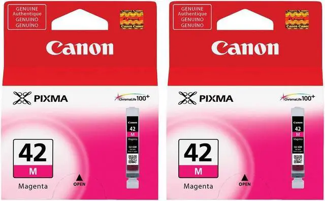 Over time, the Canon CLI-42 Magenta Ink Cartridge has established itself as an indispensable asset for photographers and professionals who demand high-quality, durable, and reliable printing solutions. This 2-pack of genuine Canon ink cartridges is designed to deliver exceptional color and longevity, thanks to the advanced ChromaLife100+ ink formulation. The ink not only produces professional-grade, long-lasting photo prints that are perfect for exhibitions and portfolios but also ensures your printed works of art retain their vibrancy and impact over time. Canon's proprietary FINE (Full Photolithographic Inkjet Nozzle Engineering) technology is at the heart of the CLI-42's performance, offering remarkable sharpness, detail, and consistency.