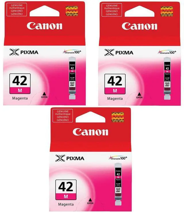 The Canon CLI-42 Magenta Ink Cartridge also features an individual ink system, designed to increase efficiency and reduce waste. With this system, you only need to replace the color that runs out, making your printing process more cost-effective and environmentally friendly. In summary, the Canon CLI-42 Magenta Ink Cartridge 3-pack offers professional quality, longevity, and efficiency, making it an essential choice for photographers, artists, and anyone seeking superior print results.