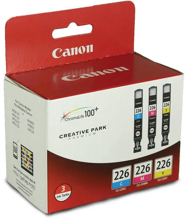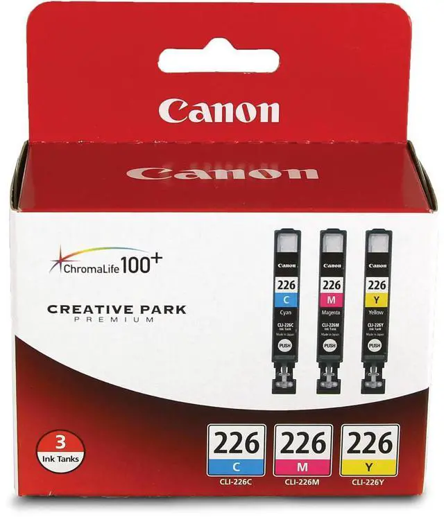 The Canon CLI-226 Cyan/Magenta/Yellow Ink Cartridges (3 Pack) are used to create long-lasting photos and beautiful documents. It has amazing color gamut and colorfastness. The individual ink tank system increases efficiency