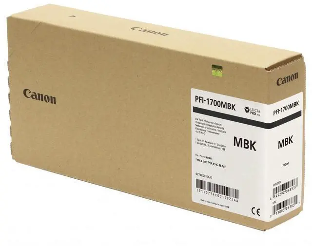 Under the umbrella of Canon's high-quality printing solutions, the 2X PFI-1700 700ml Matte Black Pigment Ink Tank stands out as a reliable and efficient choice for professionals. This durable ink tank is specifically engineered for compatibility with select models of the Canon imagePROGRAF PRO Series Large-Format Inkjet Printers, including the PRO-2000, PRO-4000, PRO-4000S, and PRO-6000S. Designed to deliver professional-grade prints, this ink tank is filled with 700ml of matte black pigment ink, ensuring crisp, clear, and vibrant print results every time. The PFI-1700 ink tank's high-capacity design makes it an ideal choice for high-volume printing tasks, offering consistent performance and quality that Canon is known for.