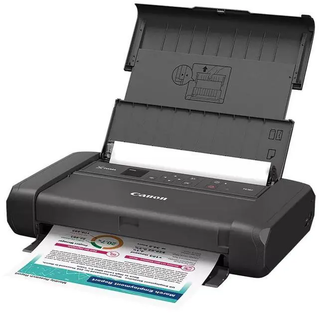The Portable Wireless Printer For On-The-Go PrintingPrint high-quality documents, flyers, one-sheets, sales materials, and even borderless photos with the PIXMA TR160 Portable Wireless Printer. Compact and lightweight, this versatile printer is designed for outstanding portability, featuring an optional battery for convenient printing from almost anywhere. Also, easily print wirelessly directly from compatible tablets, smartphones, computers, and the cloud. Save up to five custom templates to have on hand whenever you need them, and print these files directly from the printer's display. Plus, with an intuitive interface and a streamlined design, including a 1.44" OLED display, the PIXMA TR160 Portable Wireless Printer makes it easy to print from virtually anywhere you are or go.