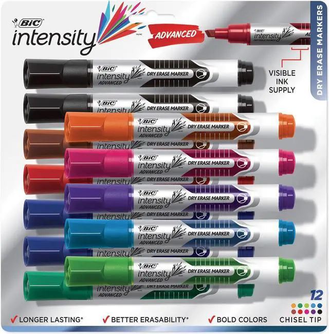 Intensity Advanced Dry Erase Marker, Tank-Style, Broad Chisel Tip, Assorted Colors, DozenLong-lasting ink supply. Provide smooth, consistent ink flow and bright, vivid colors.