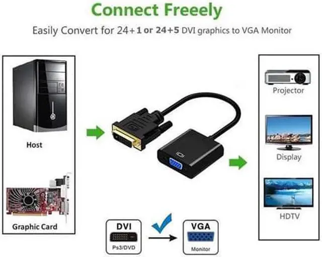 Hannord DVI to VGA Adapter,Hannord 1080p Active DVI-D to VGA Adapter Converter 24+1 Male to Female Adapter for Computer PC Desktop Laptop Projector DVD HDTV Display