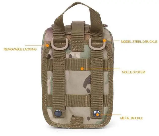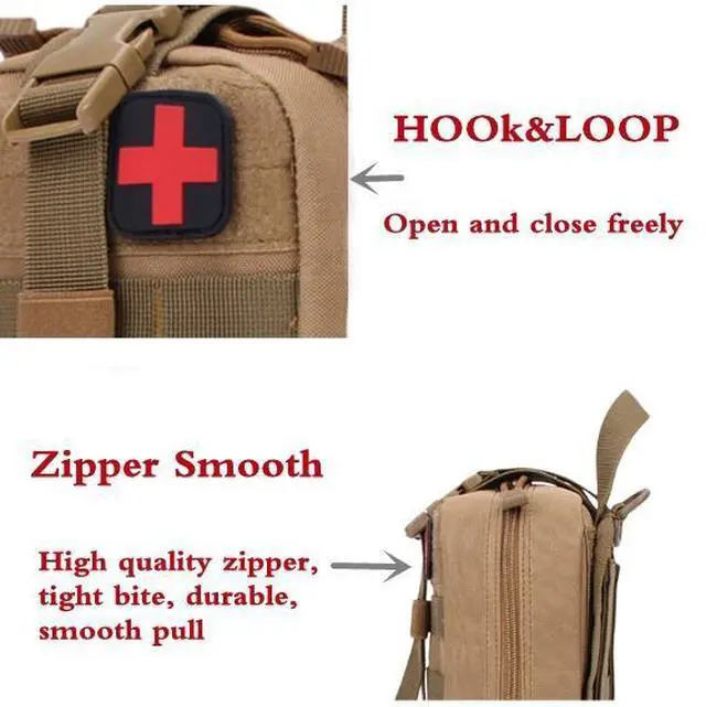Rugged 600D Polyester and sturdy double stitching gives our tactical med pouch durability in any environment.