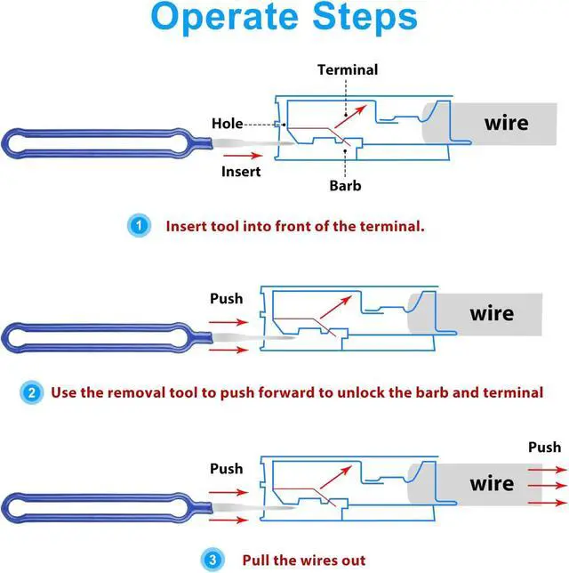 Easy and Damage-Free: No need to pry open the terminals, just push and pull the terminal pins. Our wire terminal release tool allows you to remove terminals from wire harness connectors and add new wires without compromising the original harness, maintaining factory integrity seamlessly.
