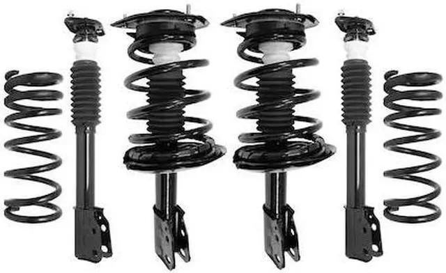 This conversion kit features our twin tube nitrogen gas charged shock conversion with coil springs along with our Preassembled Suspension Strut Assemblies that include OE style strut assembly, top mount, bearing plate, bumper, insulators, and coil spring. Allowing for a hassle-free repair with all new components and eliminates the need for specialty tools.