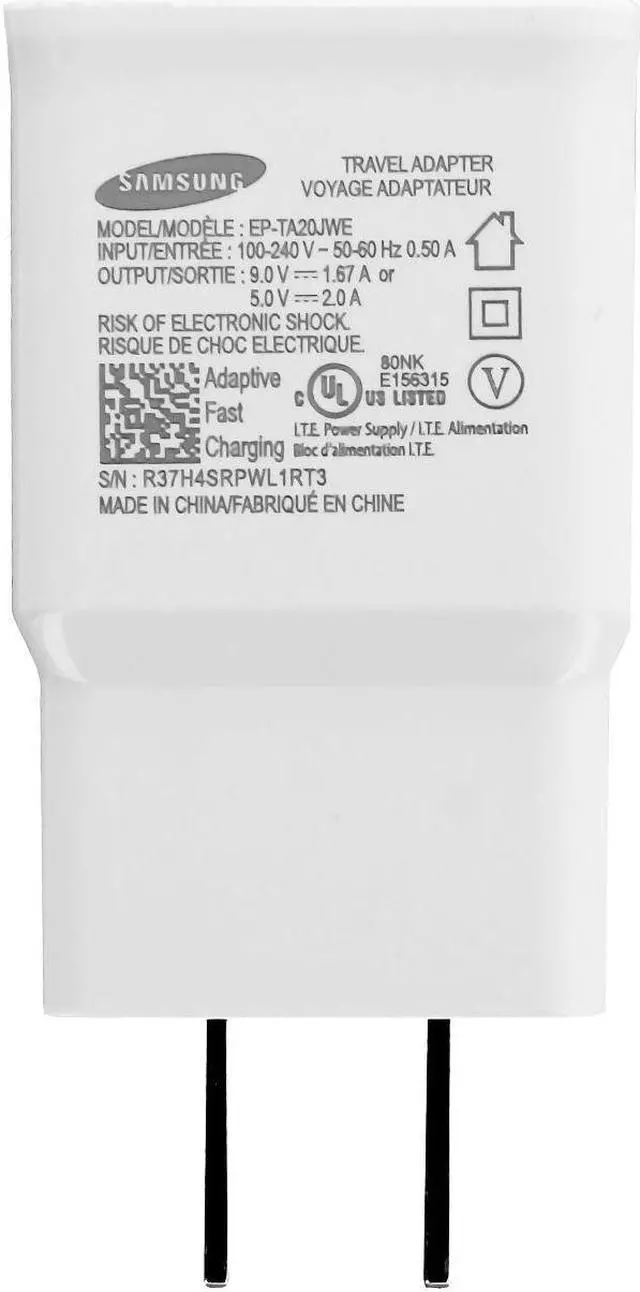 The new Samsung adaptive fast charging adapter works at 9.0 Volts and 1.67 A or 5.0 Volts at 2 A to charge your Samsung Note 4, S6, S7 and S6 Edge and S7 Edge models. USB cable not included. With the new Adaptive Fast Charging technology for Galaxy Note 4, your battery can go from zero to up to 50% in about 30 minutes, so you can spend less time connected to an outlet and more time connecting with people you care about. The Adaptive Fast Charging wall charger will charge other Micro USB devices without the Note 4\\\'s Adaptive Fast Charging feature as well, with just a standard 2 Amp charging rate. Charges compatible devices up to 75% faster than a standard charger, and other smartphones or tablets at their normal speed (up to 5 volts / 2 amps)