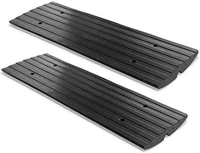 HEAVY DUTY: These mobility curb ramps for driveway are constructed from durable and high quality materials. Made of industrial grade rubber material. Protects your car from vibration and reduces the noise when you drive in or out through the curb