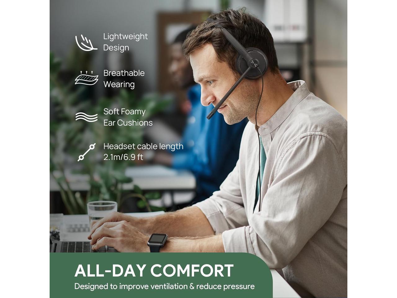 - Ultra-lightweight USB headset with comfortable foam ear cushions