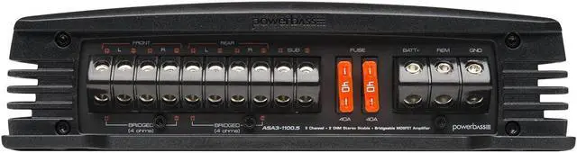 Defeatable Lighted PowerBass Badge switches the lighted PowerBass logo on or off|MOSFET Power Supply for the most efficient and distortion free sound reproduction|Variable 12 dB, High/Low Pass Electronic Crossover for infinite system applications|Variable Bass EQ that lets you get the most out of your subwoofers|Optional Remote Level Control gives the listener the option of turning the subwoofers up or down We faced the daunting task of improving our now legendary ASA-Series amplifiers. Welcome ASA3! Our third generation of ASA-Series amplifiers have a narrower footprint for installation versatility, increased overvoltage protection, broader input sensitivity, new extruded chassis designed for better heat management and a sporty light up badge. We still managed to keep all the popular features usually found only in other brands high-end ranges. Feature packed with a wide line-up of 2, 4 and even 5 channel amplifiers, ASA3 Amplifiers meet the needs of any serious audiophile. The new improved heatsink uses more extruded fins, while still maintaining the clean lines that made ASA a classic. These amplifiers always deliver pure, clean power with the soul of rock and roll or whatever your taste. Variable 12 dB, high/low pass electronic crossover for infinite system applications. A MOSFET power supply for efficient and distortion-free sound reproduction which offers 2-ohm stereo or 4-ohm mono stable capabilities. User-friendly features like a variable bass boost control with 18 dB of boost at 45 Hz to give you more output from your subwoofers. If you really want serious control of your subwoofer output, an optional remote gain is available for all 2, 4 and 5-channel models. Our Bass EQ control also gives you the ability to increase your subwoofers output by up to 18dB at the earth shaking frequency of 45 Hz. To finish these amps off, we include a remote level control to give you the ultimate in subwoofer volume control from the cockpit of of your vehicle.
