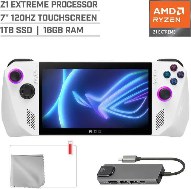 ASUS ROG Ally 1TB PCIe Gen 4 SSD Gaming Handheld 7-inch Touchscreen 120Hz FHD 1080p AMD Ryzen Z1 Extreme Processor, Mytrix Hub, Screen Protector, 3 Accessories: 4 in 1 Bundle