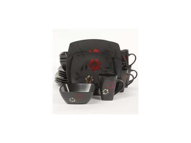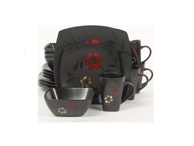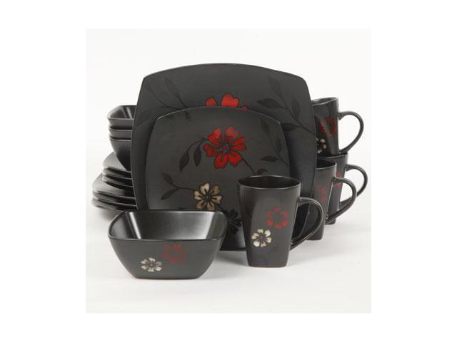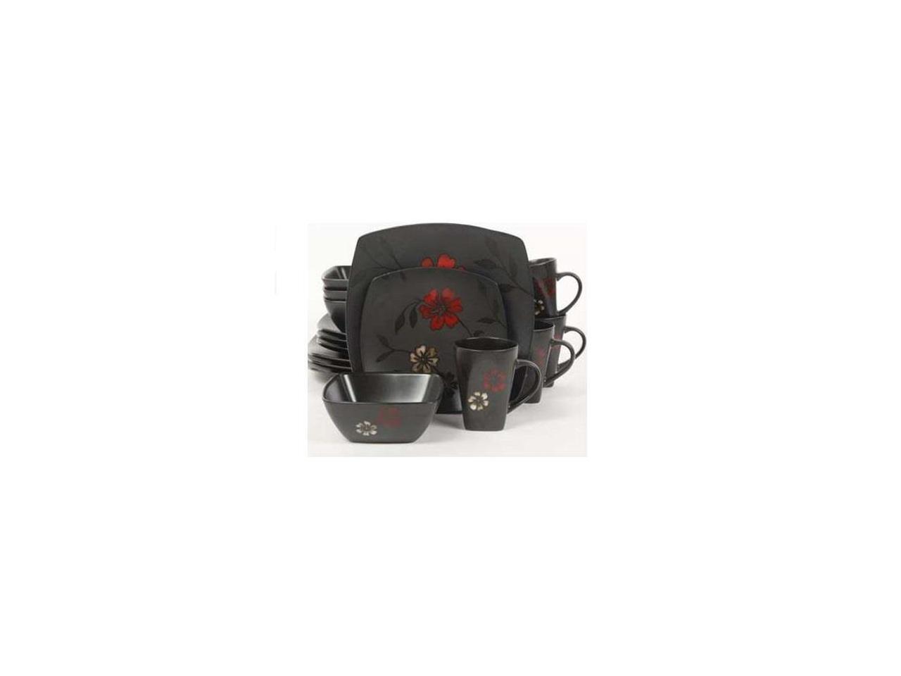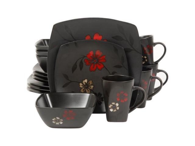 Gibson Evening Blossom Reactive Glaze Stoneware Dinnerware Set,16 Piece