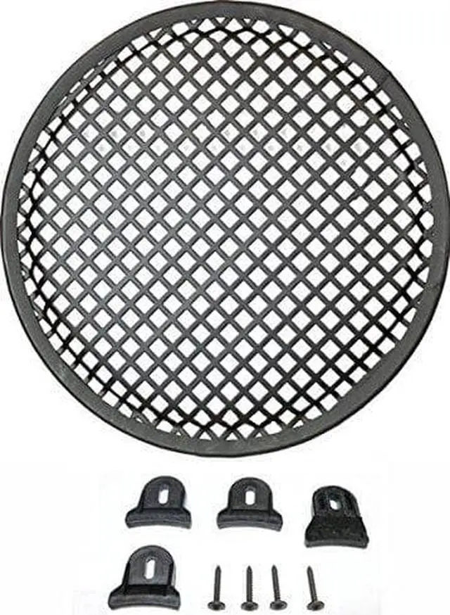 "DEEJAY LED 10-in Diameter Steel Monster Mesh Grill for 10-in Woofers with hardware - TBH10GR * 10-in Diameter Steel Monster Mesh Grill for 10-in Woofers * Includes four slip resistant plastic grill clamps and appropriate screws * Steel waffle mesh helps protect speakers from impacts * Rubber edge * Polybag packaging"