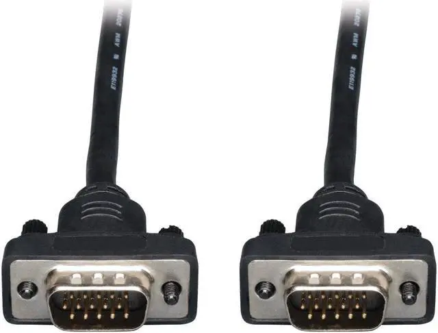 Tripp Lites 6-ft, PVc, SVgA/VgA compact monitor replacement cable, features a 40% reduced diameter cable, and smaller molded connectors. The mini-coax (RgB) and paired video wire construction delivers superior video signal quality, up to 2048x1536. Nickel plated connectors and gold plated copper contacts ensure excellent conductivity. Double shielding (foil and braid) provides maximum EMI/RFI protection. Both high density DB15 male connectors are molded and have integral strain relief to ensure long life. Tripp Lite warrants this product to be free from defects in materials and workmanship for life.