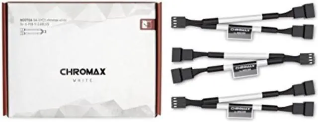 The NA-SYC1 chromax white is a fan accessory set consisting of three NA-YC1 y-cables that make it possible to run two 4-pin PWM fans on a single fan header and to let the motherboard control the speed of both fans simultaneously. Multiple NA-YC1s can be daisy-chained to control more than two PWM fans via one header. The NA-YC1as 4-pin connectors are compatible with both 3-pin and 4-pin PWM fans but PWM control is only supported with 4-pin fans. Thanks to the black sleeving the cables are ideal for creating PC builds with neat focused aesthetics and are a perfect match for Noctuaas chromax edition fans.