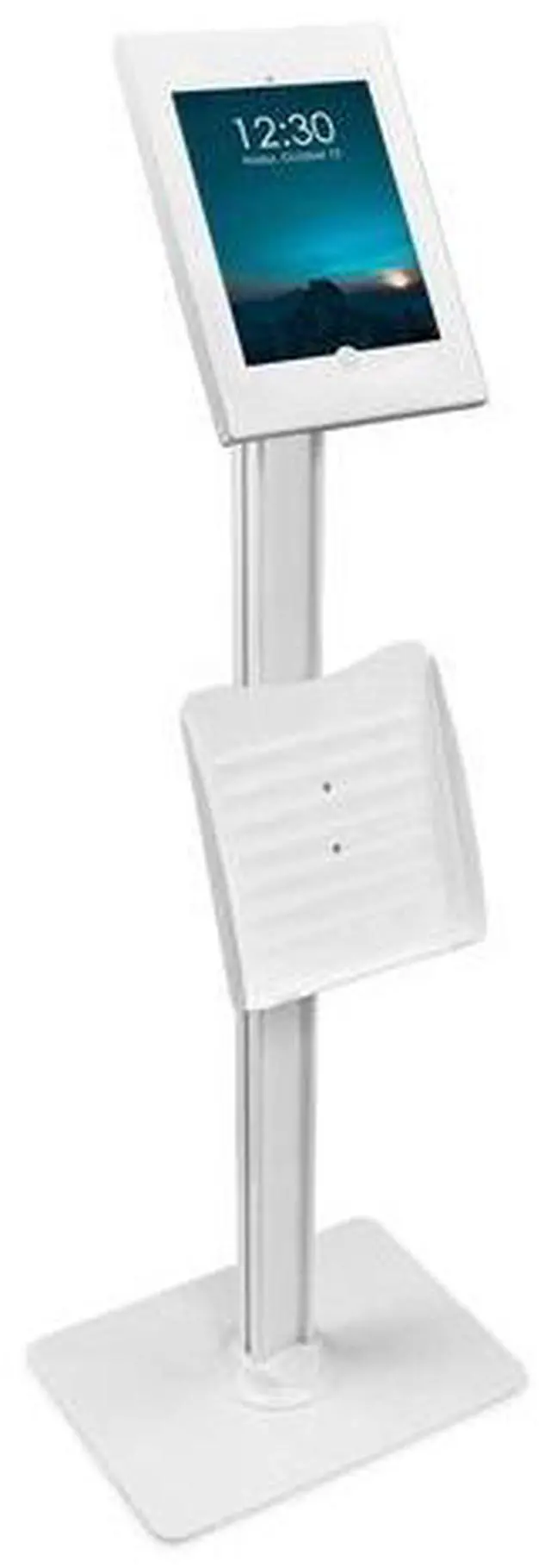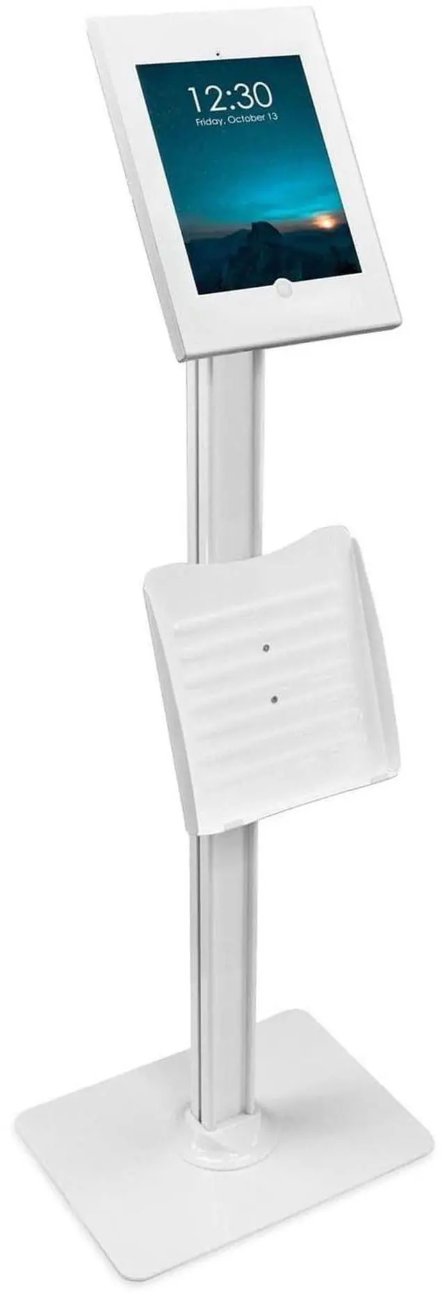 This kiosk includes a literature holder for brochures and pamphlets. Additionally, the cable management system ensures all cords are securely and neatly hidden and the built-in cabinet with lock grants access to the power supply while keeping it protected. Crafted from durable, premium materials, this heavy-duty tablet kiosk offers reliability and longevity in any setting. The free standing base can be bolted down for additional security.
