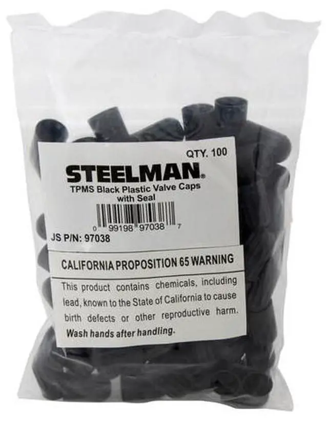 • If you sell or service tires, then you know the importance of having spare parts. Be ready to work on any TPMS system with this set of 100 plastic valve caps made to cap off the Steel man 96346 Rubber Valve Stem (sold separately) and other compatible valve stems. The Original Equipment Manufacturers (OEM) requires that the valve stem components and EPDM rubber seals are replaced every time a tire is serviced on vehicles with TPMS, so be sure to stock up on this essential tire accessory! Steel man Select TPMS offers two programmable sensors with rubber valve stems providing over 90% direct TPMS vehicle coverage. Select Sensors are programmed wirelessly with the leading TPMS tools from ATEQ and Bartech. A total of four interchangeable valve stems allow the Technician to match the vehicles original valve stem style. Steel man TPMS offers a complete line of TPMS service kits, valve stems and TPMS tools.