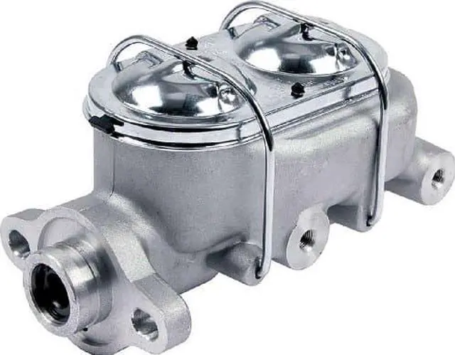 Dual reservoir master cylinders have 1" bores and outlet ports on both sides for easy plumbing and installation. Popular master cylinders are used with disc/disc and disc/drum applications. Slotted mounting holes on 3-1/4" centers work well with Allstar 7" and 8" brake boosters.