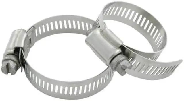 Heavy duty all stainless steel construction clamps are easily tightened with a deep slot hex head screw. Superior to standard hardware store clamps. For best connection, select the clamp which fits within the range of hose O. D.