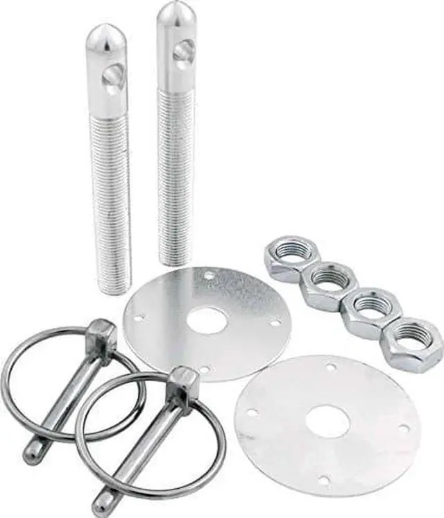 • silver aluminum hood pin kit with 1/2" posts. set of 2.