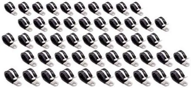 Aluminum clamps have a protective neoprene cushion to prevent abrasion and a 1/4" mounting hole to secure electrical wiring, hoses or cables to a panel or frame. Package of 50.