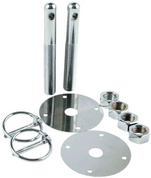 Kits include two each: 4" x 1/2" dia. chrome steel pins, chrome steel scuff plates, clips and four nuts. Available with flip-over or hairpin style clips.