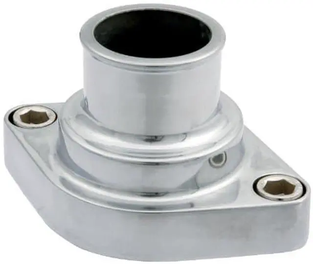 Aluminum water necks fit most Chevrolet V8s. Two-piece design necks swivel 360 degrees to accommodate LH and RH radiator inlets. An O-ring seal and two chrome plated socket head cap screws are included.