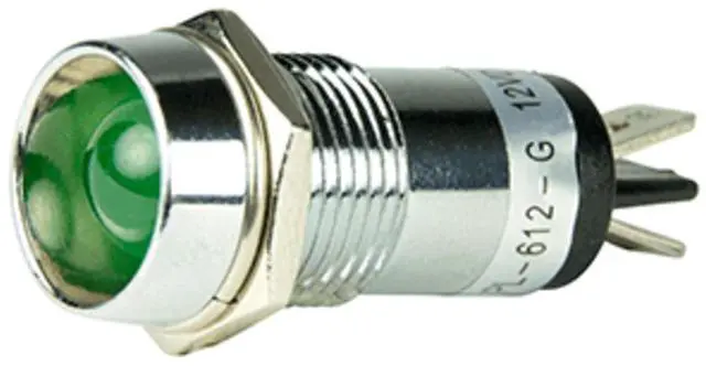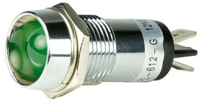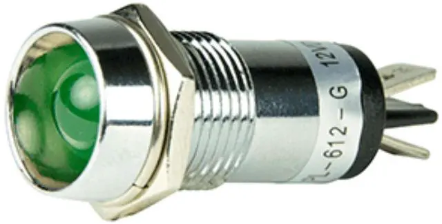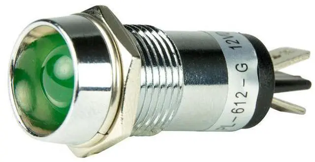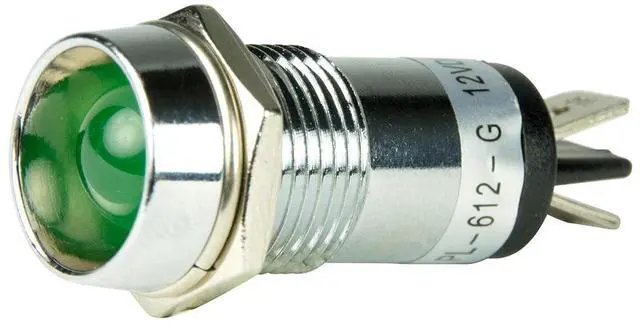 BEP LED PILOT INDICATOR GREEN 12VLED Pilot Indicator Light - 12V - GreenThese 12V DC solid-state LED diodes never need replacement. The amber colored light provides easy to see indication of circuits that are active.Features:Bright chrome-plated body, bezel, washer and hexnutQuick connect terminals are polarized for ease of wiringMounts into a 9/16 hole, fits panel thickness of 3/16 through 9/32Compares to Cole Hersee part number PL-612-G-BP WARNING: This product can expose you to chemicals including di(2-ethylhexyl)phthalate (dehp) which is known to the State of California to cause cancer, birth defects or other reproductive harm. For more information go to P65Warnings.ca.gov.