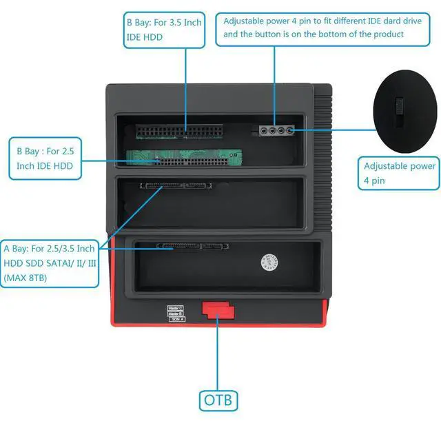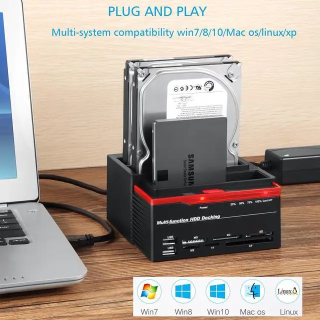2.5"/3.5" USB 3.0 To 2 SATA Ports 1 IDE Port External HDD Hard Drive Disk Docking Station Card Reader USB3.0 Hub With OTB/OTC