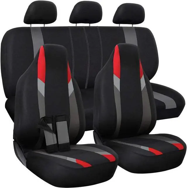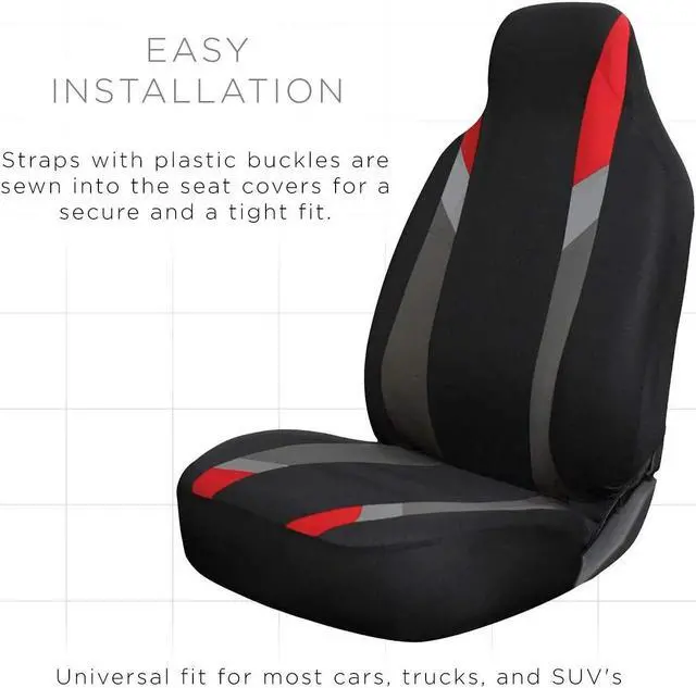 • Car Seat Cover - Poly Cloth Two Toned Red Front Low Bucket Seat - 2 Pc Set