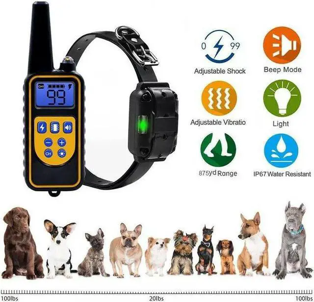 2600 FT Dog Training US Collar Rechargeable Remote Shock PET Waterproof TrainerDescriptionThe dog training collar is a useful and effective tool to help correct misbehavior of your pet dog, which can give you a best-trained and well-behaved one. Comes with an 875 Yard/2625 ft effective remote control range and a high-sensitive receiver for pet to receive signal, which brings much convenience to train your pet.