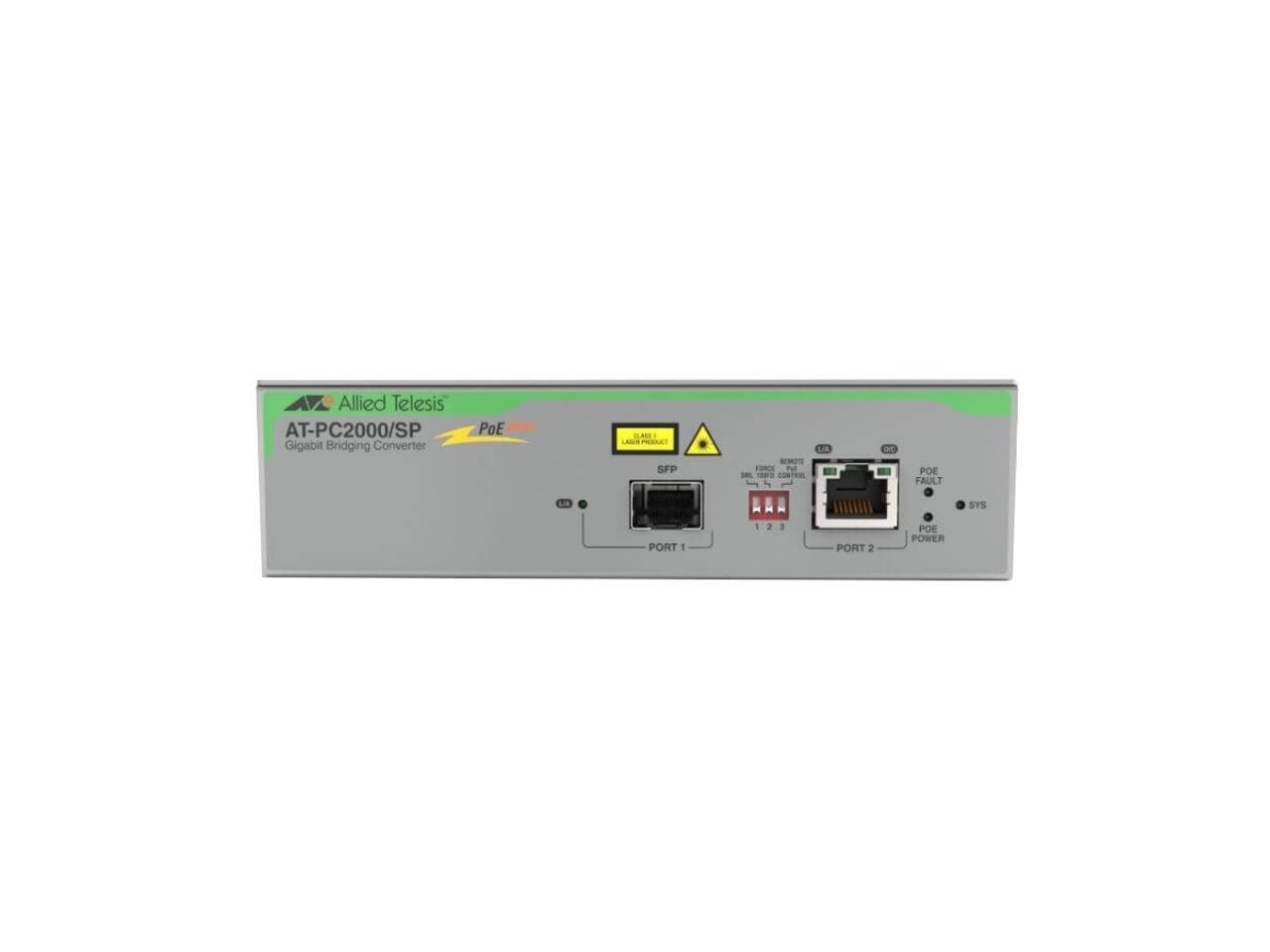 Allied Telesis 10/100/1000T PoE+ to SFP media and rate converter