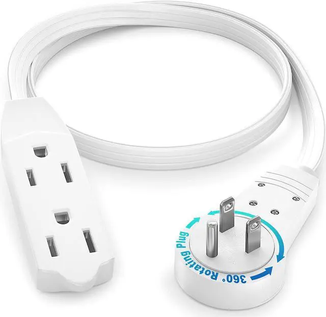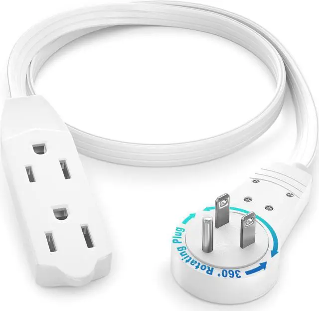 Maximm 360 Rotating Flat Plug Extension cord/Wire The rotating extension cords are unique for their sleek and adaptable design. They are versatile due to its rotating plug providing angular flexibility to a full 360 degrees, the prongs rotate in the plug so you can aim the cord in any direction you wish without blocking the other outlets. clutter controlMaximm Solves those power problems with ease using the Flat Plug Rotating Extension cord. It has a space-saving design to eliminate bulky or awkward cords. Since it hugs the wall nicely and extends only a half an inch from the wall bending to a 90-degree angle - so it doesnt poke into adjacent objects - you can place your desk, couch, bookshelf etc, right up against the wall freeing up some space.