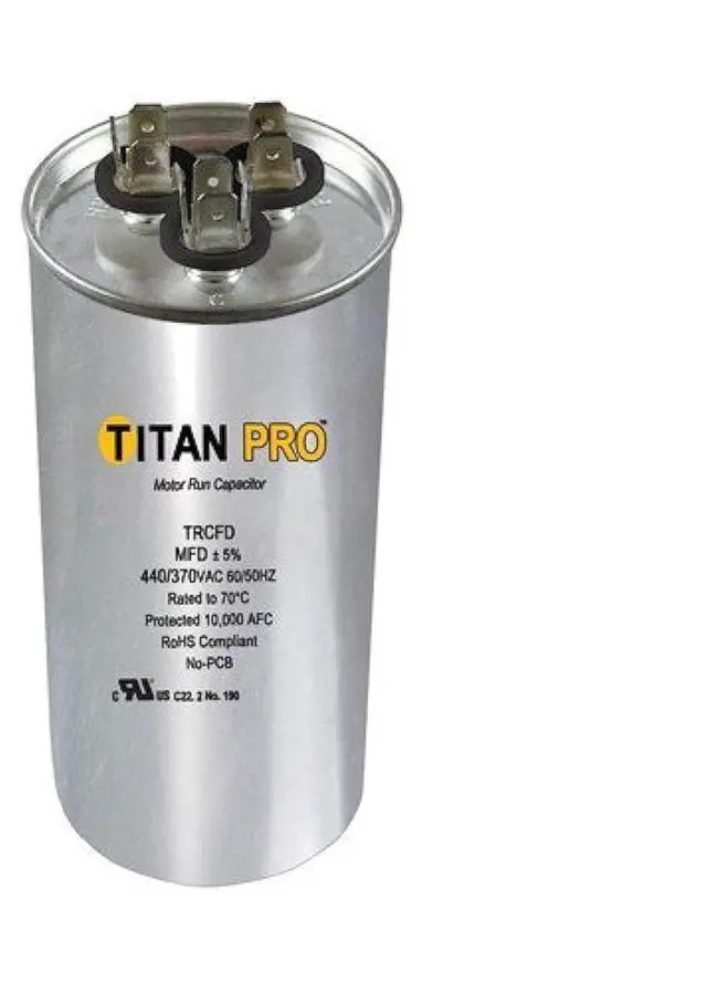 Not all capacitors are built the same Take it to the PRO level At 60 000 hours of operational life Titan PRO Professional Grade Motor Run Capacitors get the job done by outperforming standard motor run capacitors of similar value by 83 60 000 hours operational life Titan PRO 440 370 volt design reduces inventory Titan PRO 370 volt offers best in class value Built to the toughest international standards for AC motor run capacitors including EIA 456 A and IEC 60252 1 2001 100 electrical testing Heavy edged metalized polypropylene film is used for the dielectric Proprietary bio degradable oil Second generation anti explosion safety switch
