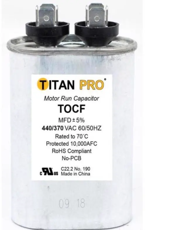 Brand Name TITAN PRO 4 Mfd 440 V Oval Run Capacitor Oval Run Capactr 4 Mfd Product Length 1 45 Width 2 2 Height 2 9 Weight 0 2