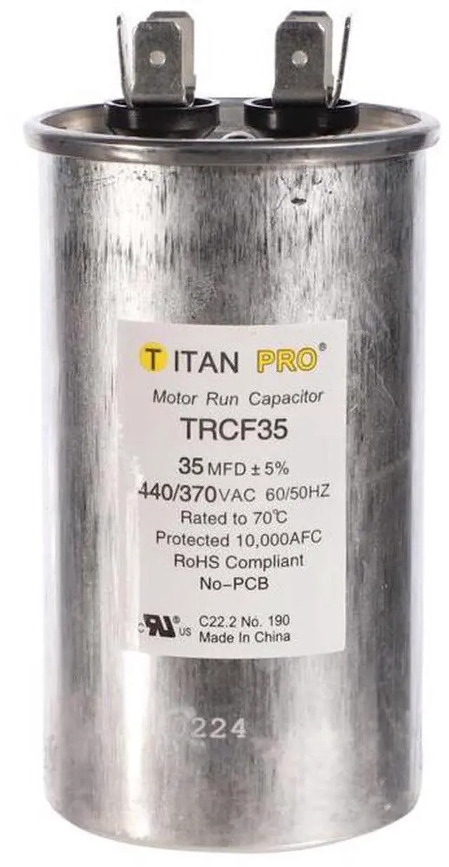 Brand Name Titan Pro Case Material Aluminum Depth 1 97 Height 3 54 Microfarads 35 MFD Model Compatibility Product Type Round Run Capacitor Sub Brand UL Listed Yes Volts 440 Width 1 97
