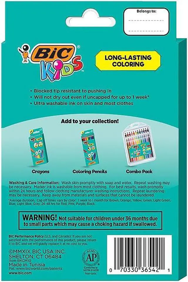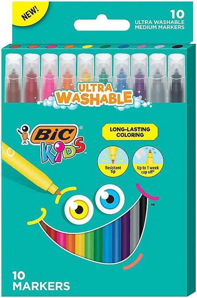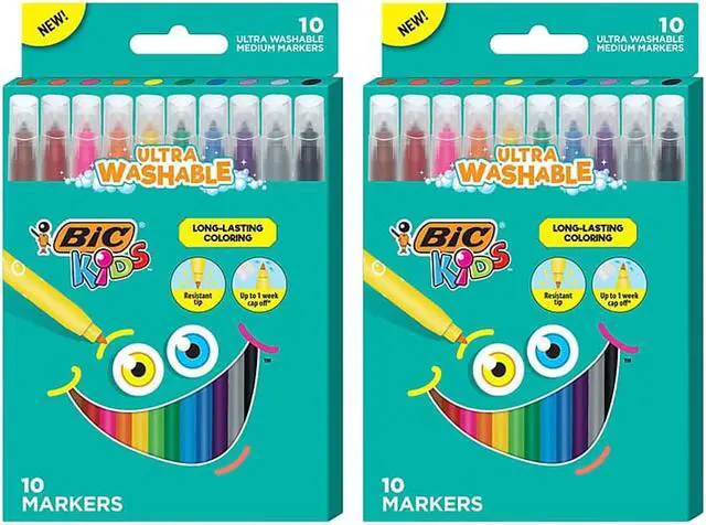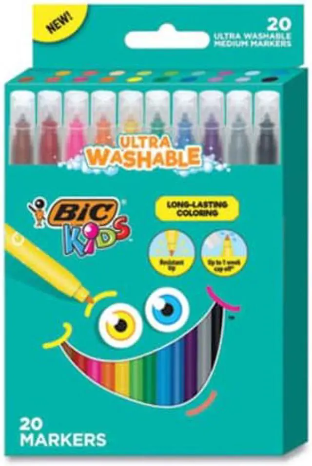 BIC Kids Ultra Washable Markers, Medium Bullet Tip, Assorted Colors, 20/Pack