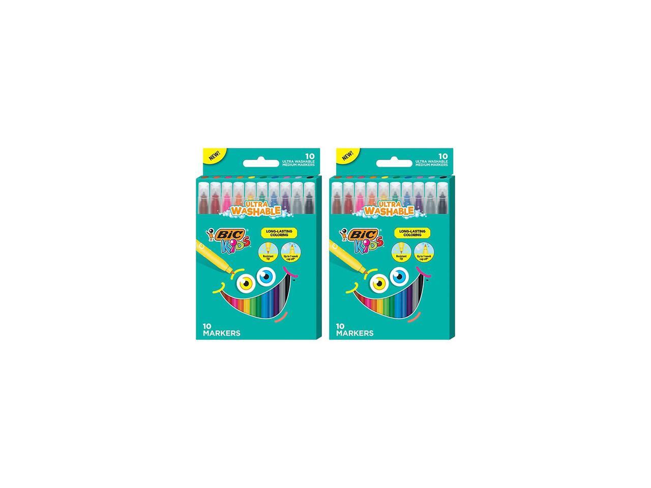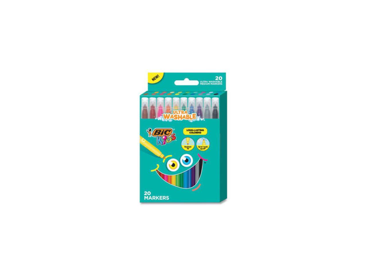 BIC Kids Ultra Washable Markers, Medium Bullet Tip, Assorted Colors, 20/Pack