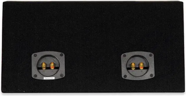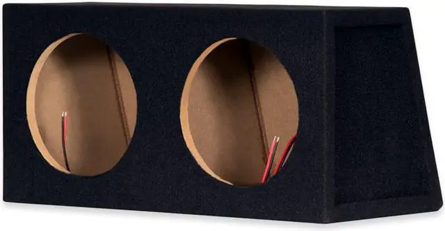 goldwood Sound TR8D Sealed Dual 8" Woofer car EnclosureJust connect your wires and drop in your woofers and youre ready to roll! Measure the space in your vehicle, this box size is (H x L x D) 10" x 20" x 9.75"T he front (where the woofers load) is flat and the back is slanted 2.75"D ual 8" woofer holes are 7.125" in diameter and mounting depth is 6.5" gold binding post, pos and neg, raw wire input connections with wire per sideHigh Quality cARB compliant MDF wood cabinet with black aviation grade carpetEnclosure volume is. 33 cubic feet per chamber,.