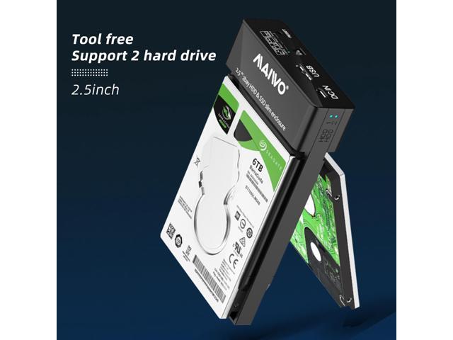 2 Bay HDD enclosure, can support extended capacity of 12TB, support two 2.5-inch SATA interface HDD hard drive, single disk can support 6TB capacity,do not support 3.5" SATA HDD or any IDE HDD.