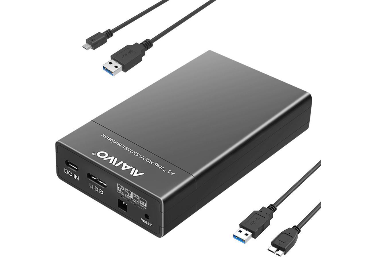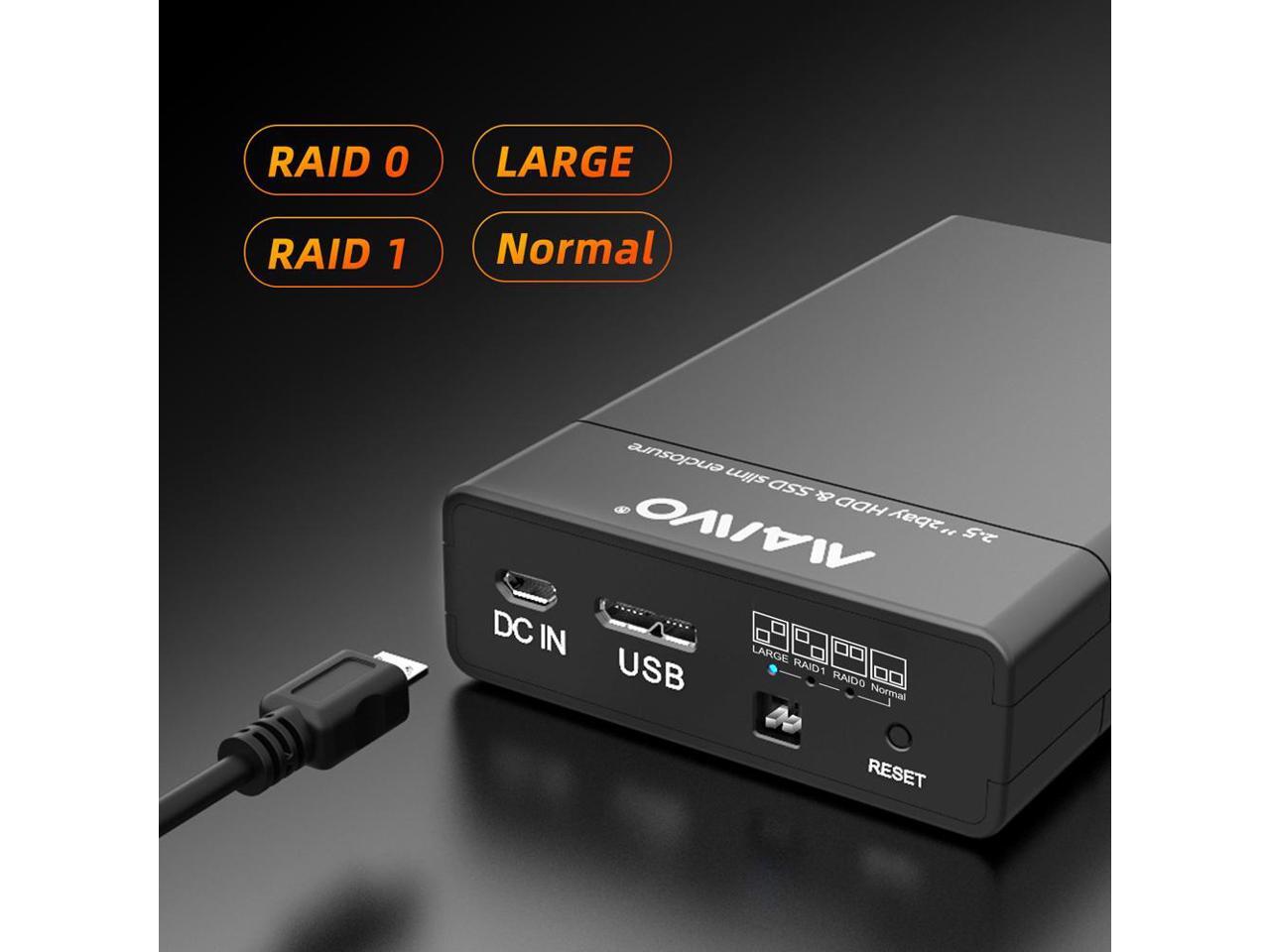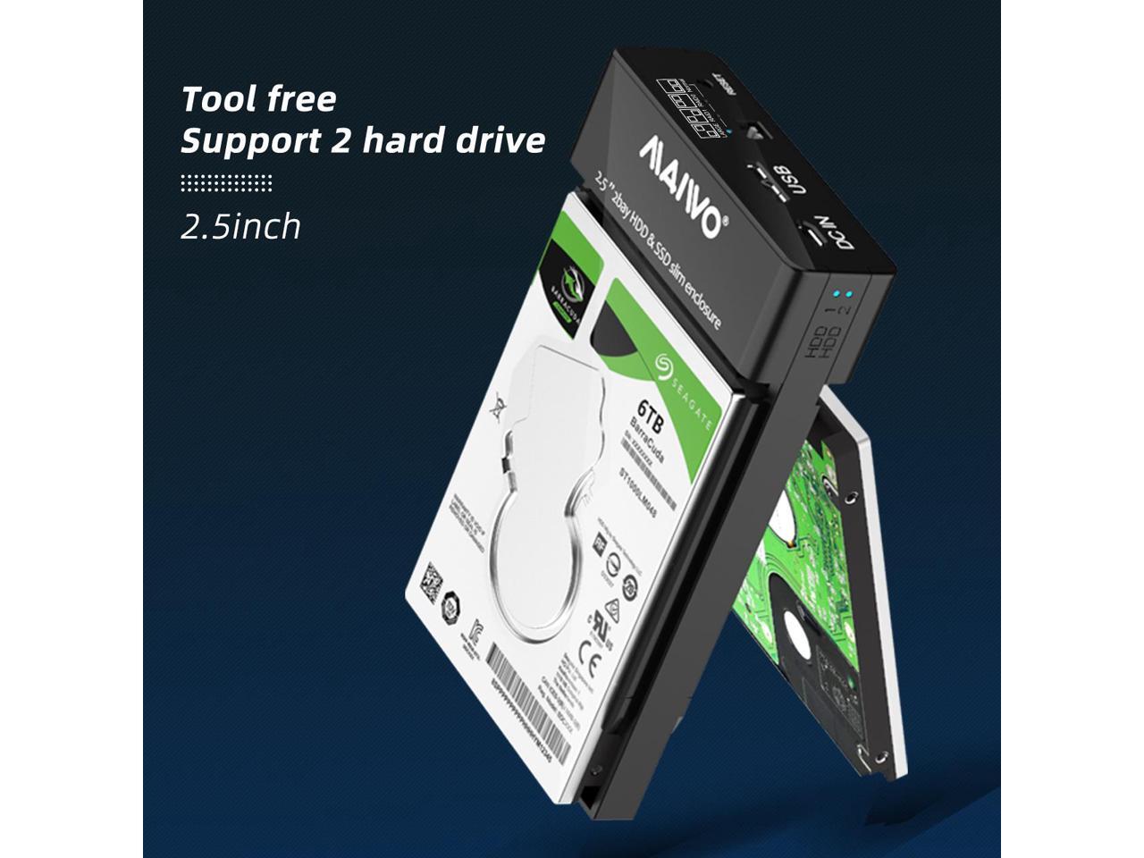 MAIWO Dual Bay RAID Enclosure for 2.5" SATA Hard Drive, USB 3.0 HDD SSD Hard Disk Enclosure with 4 RAID Modes, Black Tool-free Slide Design